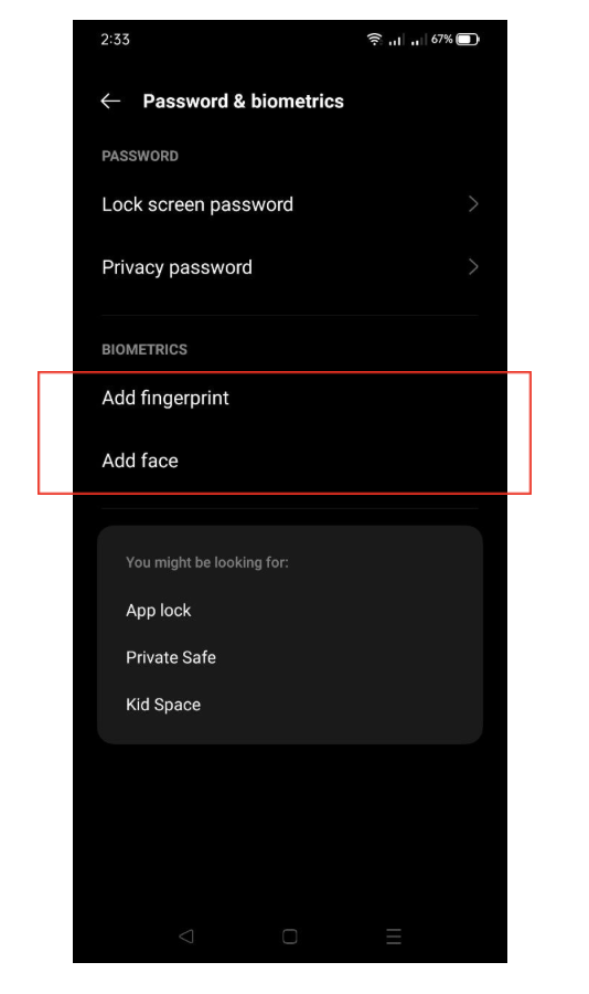 2. On settings, search for Biometrics on search bar or scroll down until you see Passwords & Biometrics.